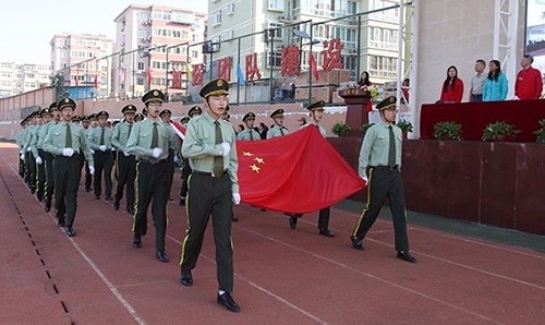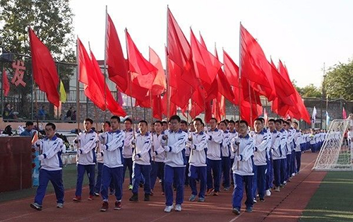 高三红旗队雄赳赳、气昂昂,踏着整齐有力的步伐走过主席台。猎猎招展的红旗,带着学子们的高考梦想腾空而起,飞向远方。