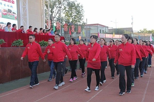可亲可敬的老师们组成的教工代表队走过主席台,他们能在三尺讲台传道授业,也要在体育赛场奋勇争先,他们的口号是:学高为师,身正为范,公正裁决,准确评判。