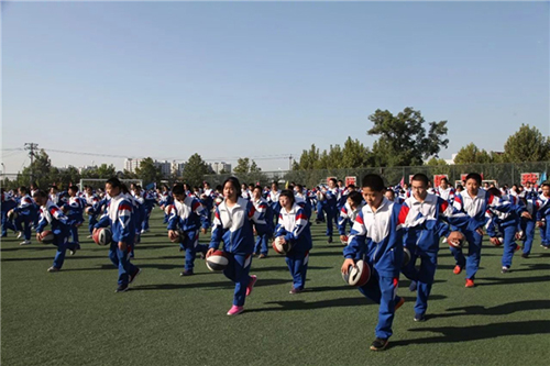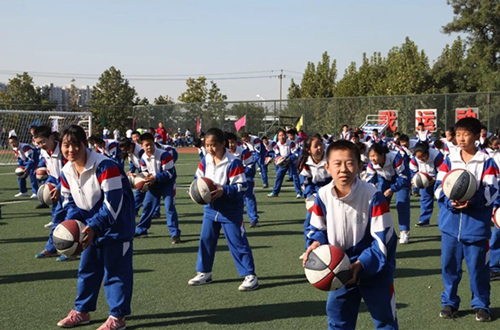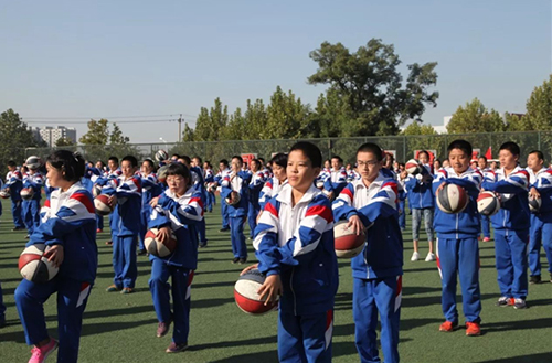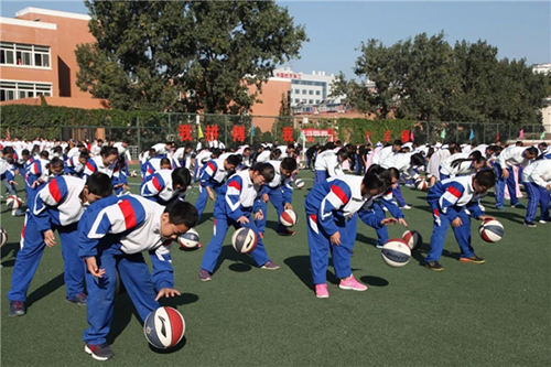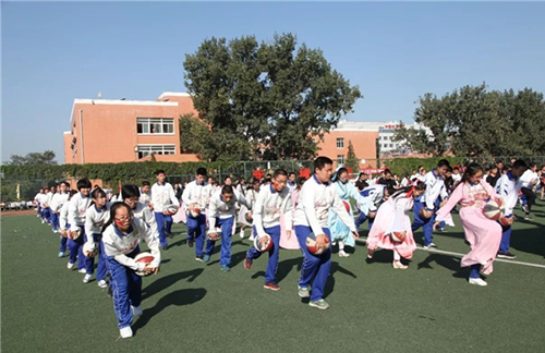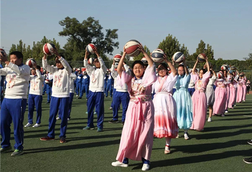 初二、初三、高二3个年级联合进行花式篮球展示。作为北京市花式篮球项目基地校,我校大力推广花式篮球运动,已经初步形成规模和特色,同学们随着动感的音乐转动花式篮球,展示各种动作,舞动青春风采。