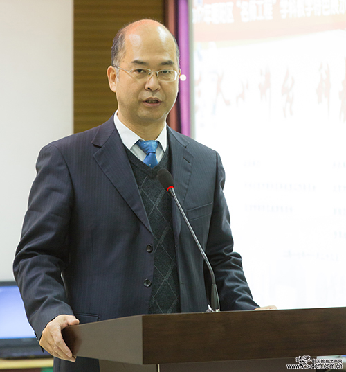 黑庄户学区副理事长、黑庄户中心小学校长刘国青在观摩展示课后进行发言。他对教委、教研室及专家给予黑庄户区名师展示的表示感谢,同时他对学校老师提出希望,希望他们执着、投入到教育事业中,像胡桂颖老师学习,争取能成为名师。
