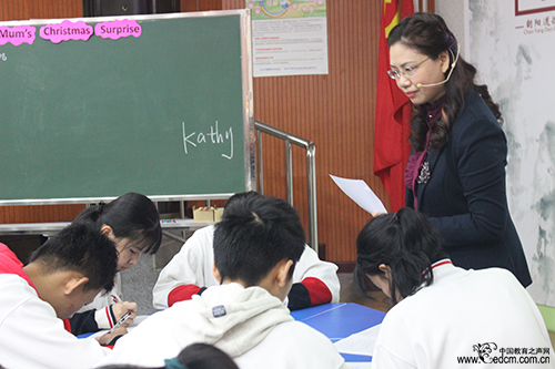 在赵文娟老师的英语课上,孩子们可以自由发挥,改变原来“不敢说”、“怕说错”的课堂气氛,精巧设计的课堂讨论环节成功地将严肃的英语课变得轻松活泼,师生的欢笑声贯穿课堂始终。