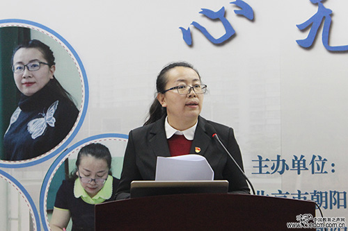 朝阳外国语学校党支部书记黄莉致辞,她指出,学校依托先进的办学理念与独特的校园文化,自成建校以来便一步一个脚印地不断攀登,无数奖项与荣誉就是校领导、教师和学生们共同努力的结果。在感谢学校和学生积极配合的同时,不能忘记朝阳外国语学校一批批优秀的教师队伍做出的无私贡献,学校数学教研组坚守素质教育高地,以教书育人为己任,坚持“品格第一”的育人理念,在工作中积极进取、精益求精,用教师的教育激情点燃学生发展的精神之火;用不断提升的教育水平浇灌学生的精神之树;用辛勤的努力照亮学生的前行之路。在学校发展壮大的过程中,老教师用宝贵的经验保驾护航;中年教师承上启下、勇挑重担;青年教师充满激情与活力。数学教研组团结向上,严谨治学,芬芳桃李,共同创造了教育者的辉煌人生。“分层不分班,保底不封顶”,数学教研组在学校教学改革过程中践行分层教学和学生自主学习的教学模式,运用走班制有效促进了学生个性化发展。此外,数学教研组设计开发了多种校本数学课程,陆续开设了英文数学课、魔方课、绳结课、数学建模思想课……为进一步提高学生积极性,培养学生的学习能力,已上线数学微课视频300多节供学生学习。为推动学校教学改革,推动学科建设和促进学生学习水平的提高,数学教研组全体成员一直在努力。她认为,作为初中数学教研组组长的郝永军老师,在教育教学实践中细心揣摩、用心研究、不断探索数学教学的真谛,不断更新有效的教学方法,这样长久不懈的努力才带来今日丰硕的成果。