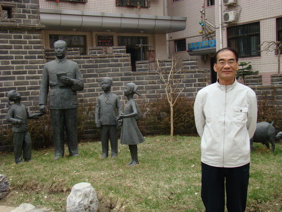 走进奋斗小学,迎面看到是校园特色小景:潺潺的流水呈人字形,环绕着蜿蜒的长城。此景取“长城”、“黄河”之谐音,故命名“诚和园”。名字是见培炎起的,同时也寓意“诚信和谐”。奋斗小学诞生于抗日烽火中,被誉为“马背上的摇篮”,后来跟随抗战部队辗转来到北京。见培炎把学校的足迹置于花园,他想让师生们领略学校“质朴、坚韧、平和”的性格和艰苦奋斗、自强不息的精神。