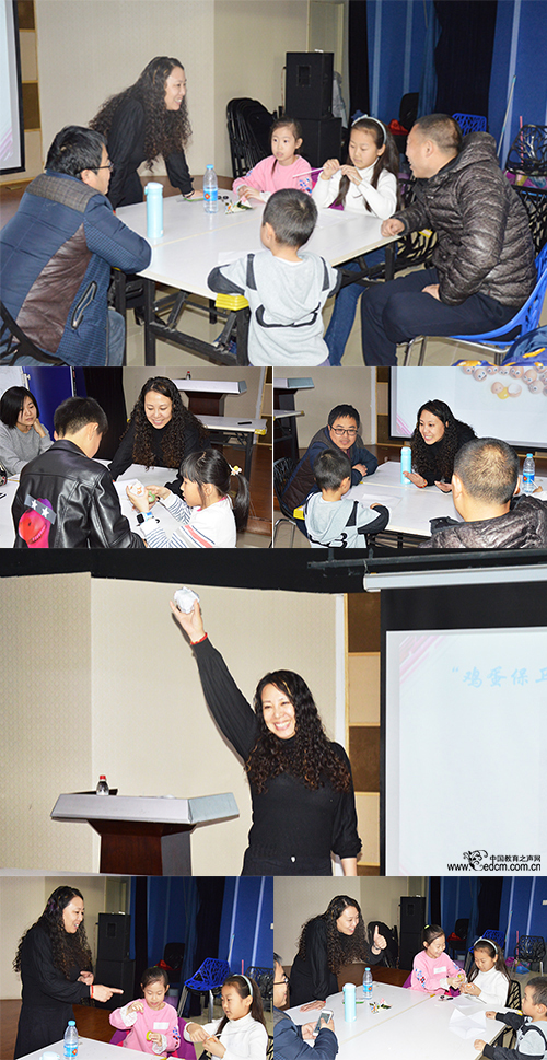 师生运用生活中一些常见的道具进行了“转动的能量”“鸡蛋保卫战”以及“踩气球PK”完成10个单词的学习。每一个游戏都是在欢声笑语中度过的,家长们纷纷积极参与到活动中来,明显看到了孩子们的团队意识越来越强,每个人都在游戏中踊跃思考。经过老师不断强化与鼓励,孩子们竟然简单有趣的游戏中将10个单词顺利背出,5岁的孩子也发音标准。