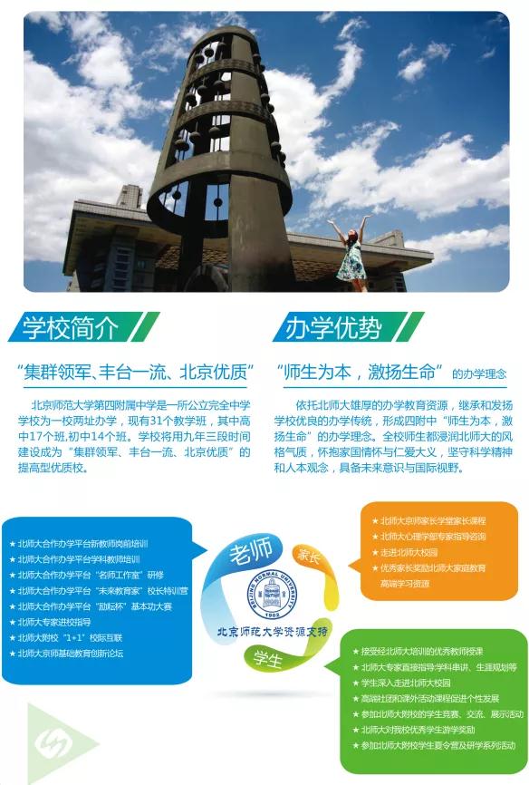 了解四附,爱上四附,加入四附,北京师范大学第四附属中学校园开放日期待您的到来,欢迎广大家长和学生亲临现场体验美好的中学生活!