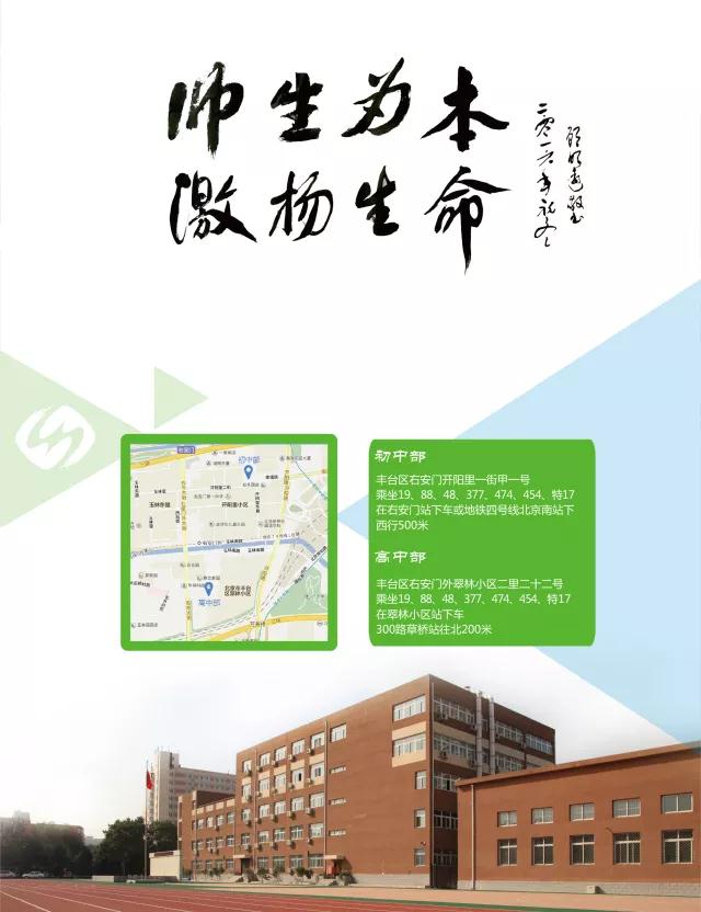 我校高中部面向丰台区学校招收具有升学资格参加中考统一录取的初中毕业生。我校高中部是丰台区高中示范校,荣获丰台区高考显著进步校称号。拥有一支由特级、市、区骨干为主体的优秀教师队伍,高中阶段设有三大板块八大课程群的课程体系和丰富的科技、艺术、体育活动,助力每个学子梦想成真!