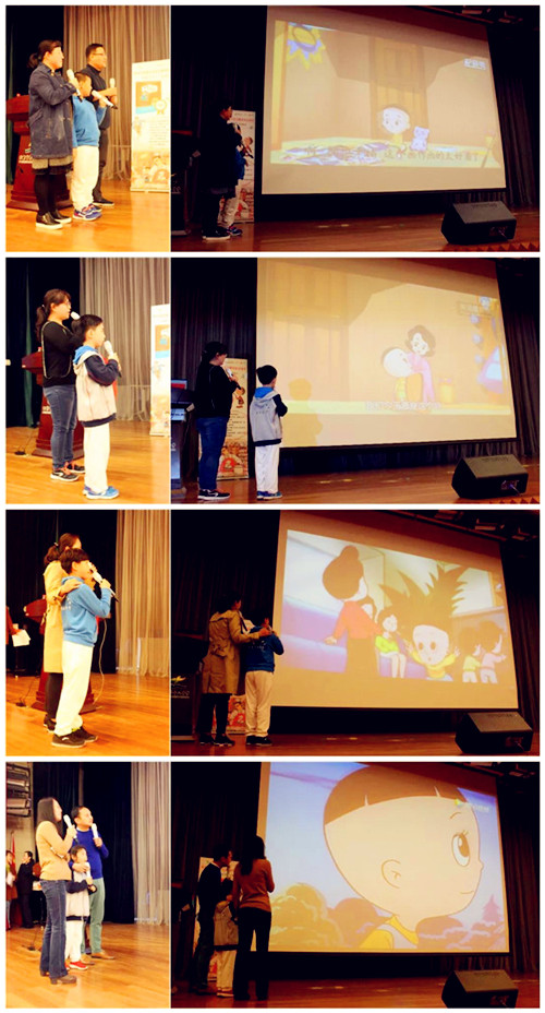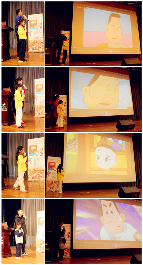 据介绍,为了营造和谐的亲子阅读氛围,在此次活动的前期,各位同学和爸爸妈妈一起阅读原著,并为动画片段配音。同学们提交的配音作品中,学校经过严格的多轮筛选,评出了“最佳表演奖”。现场,“最佳表演者”的获得者和家长一起上台,为在座师生表演了精彩的配音,他们落落大方,用声音演绎经典,可谓是让大家“声临其境”。通过他们的表演,大家体会到大头儿子、小头爸爸以及围裙妈妈充满乐趣的日常生活,更感受到了成长的快乐。