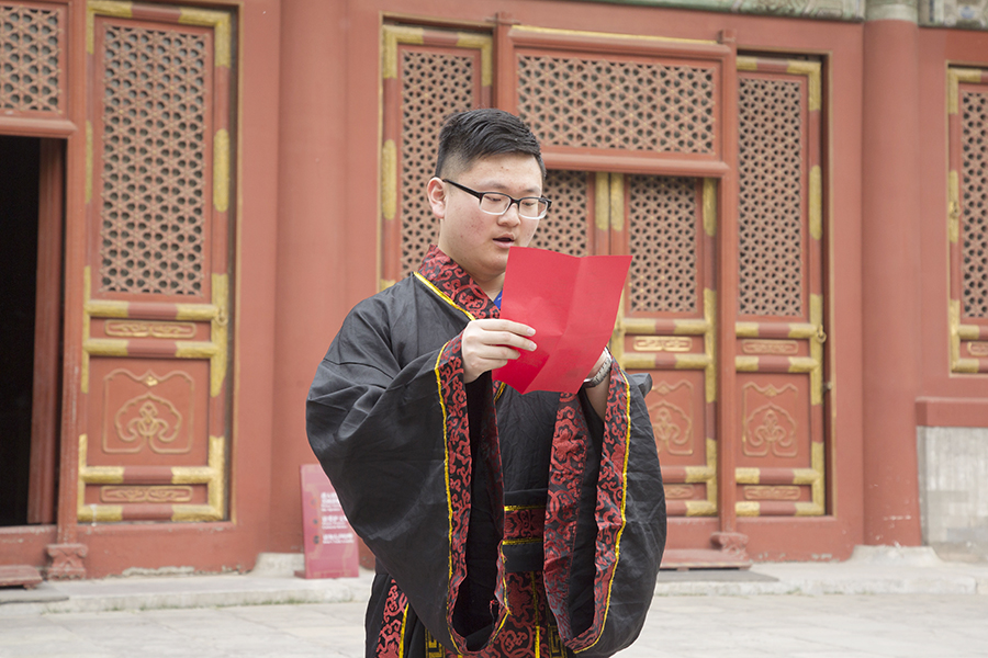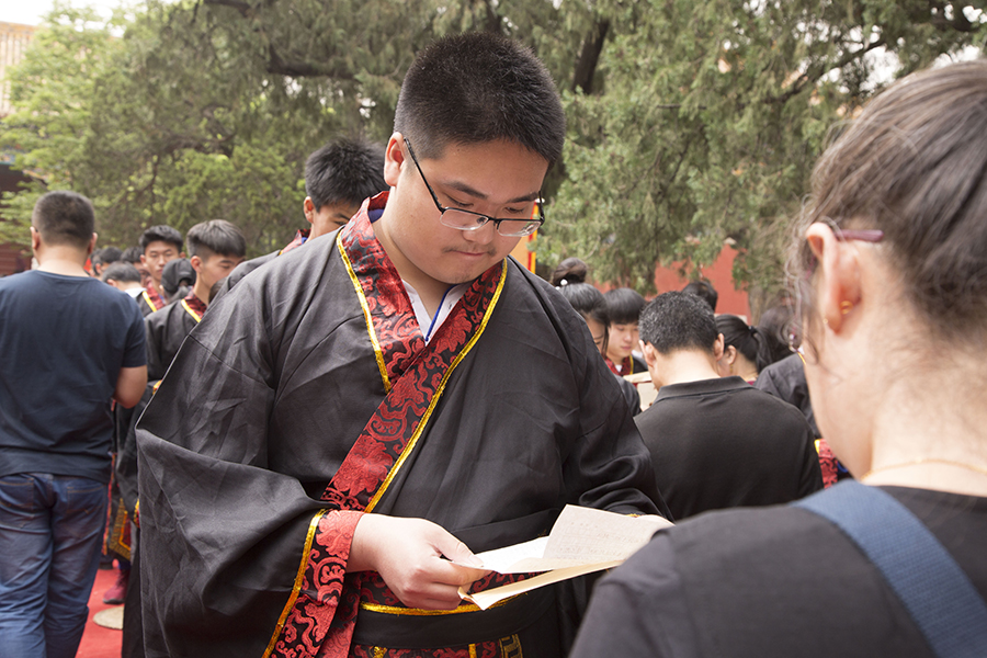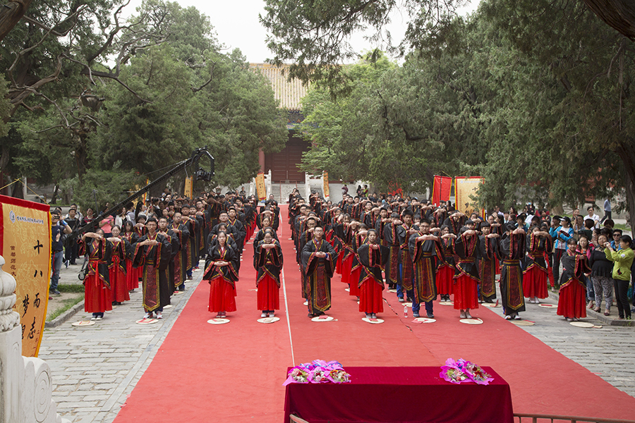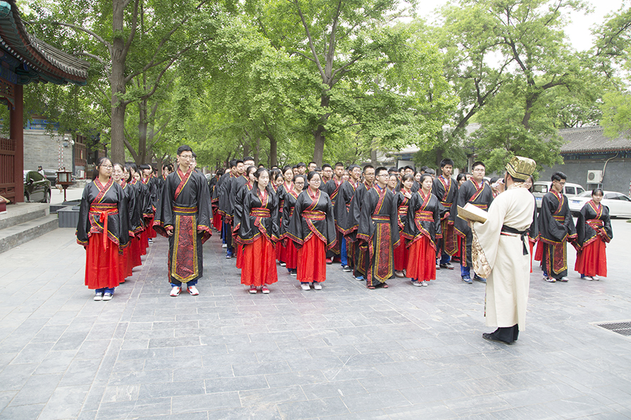 2018年5月5日上午,拥有700多年历史的北京国子监又迎来了一百三十多位青春蓬勃的少年,他们是首都师范大学附属云岗中学高三年级全体学生。这一天,他们在师长的祝福下褪去青涩的外衣,肩上背负起义务和责任;这一天,他们学习传承了中华美德和传统国学文化礼仪;这天,他们长大成人。