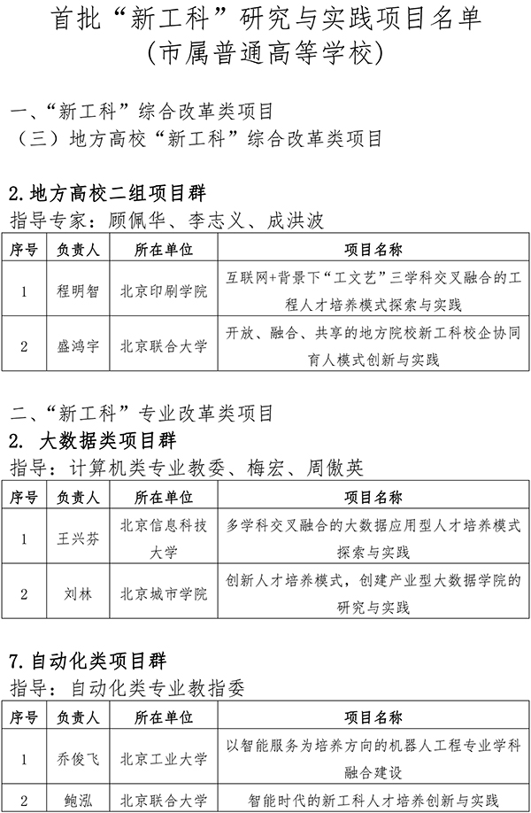 北京市首批普通高等学校“新工科”研究与实践项目名单新鲜出炉