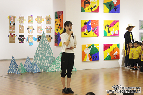 精彩的演出结束后,幼儿在家长的陪伴下共同欣赏画展。