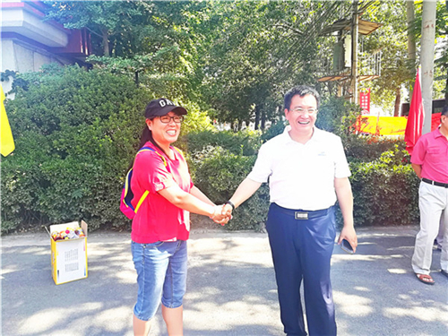 教师们始终面带微笑,或与考生握手、拥抱,送上最温暖的鼓励和祝福;或耐心细致回答考生的问题,帮助考生答疑解难;或提醒考生考试事宜,帮助考生消除紧张,自信应考。