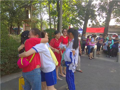 2018年6月7日,高考如约而至。首都师范大学附属云岗中学高三年级的教师们在年级主任徐晓林老师的带领下,提前到达北京第十中学考点,给考生们加油、鼓劲。部分学校领导也早早赶到考点,为同学们送上最暖心的祝福。