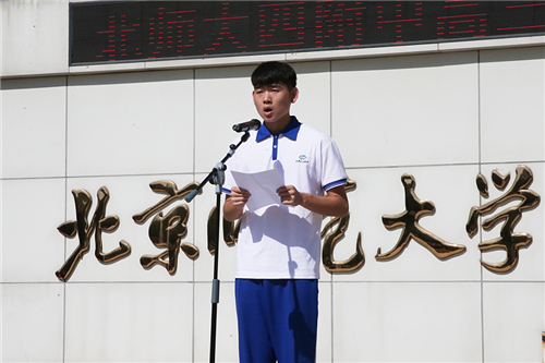 在欢送仪式上,高二年级学生代表郑天骁讲话,代表低年级向即将毕业的学长学姐送上祝福,祝福他们鼓足勇气,此刻出发,取得优异的成绩。高三学生代表赵子晨,回顾了在学校学习成长的历程,回顾老师谆谆教导的点点滴滴,回顾三年不计得失的拼搏,对高考充满了信心和期待。