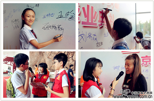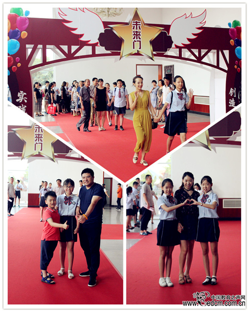 7月5日18:00,身着夏季校服的同学们携手爸爸妈妈走上红毯,他们走过“梦想门”和“未来门”,来到红毯尽头签名。每一位同学都是从容自信,犹如奥斯卡颁奖礼红毯上的影星,这样华丽的出场就是一场蜕变,也由此揭开了他们的人生新篇章。在接受校园小记者采访时,同学们表达了对母校的依恋:“我会永远记住在学校的六年时光,谢谢母校对我的栽培。”家长们则表达了殷切的希望:“很开心孩子小学毕业了,希望他不忘老师的教诲,飞的越高越远,也希望他常回母校看看。”