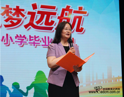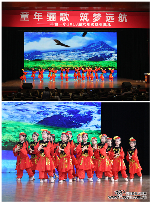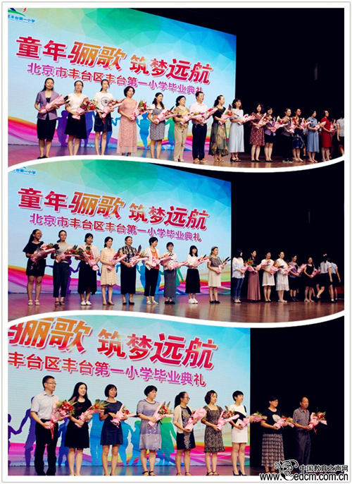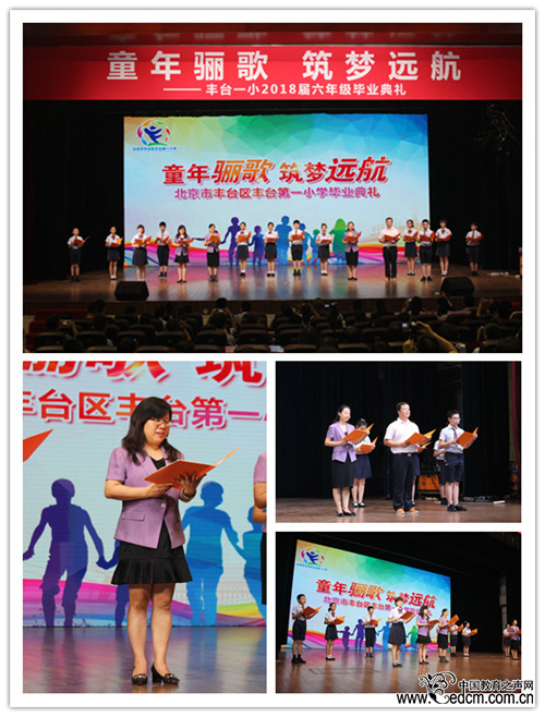 在热烈的掌声中,中央广播电视总台小喇叭节目主持人春天与两位学生主持人满面春风地走上台,用悦耳的声音宣布:“北京市丰台区丰台第一小学2018届六年级毕业典礼正式开始!”