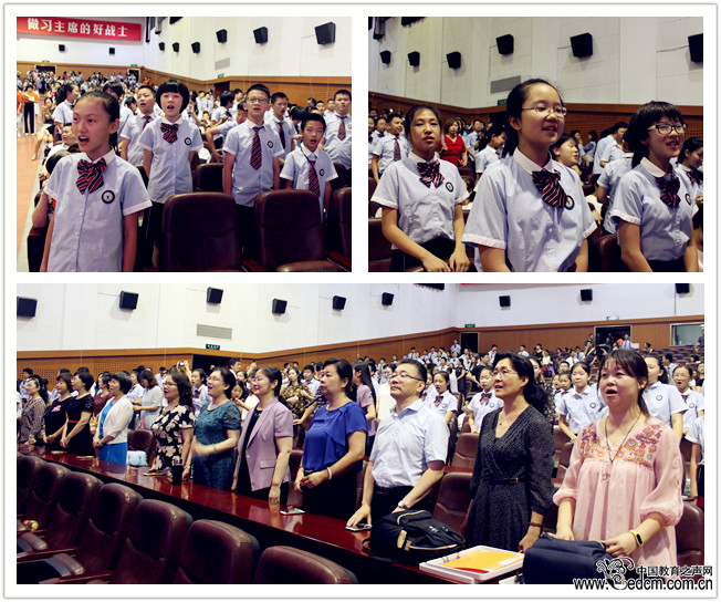 全体同学和老师起立,最后一次合唱校歌。同学们眼里已有隐隐的泪光,他们歌声嘹亮,表情坚定,每个人都在心里暗暗决定:铭记老师的教诲,带着梦想远航。