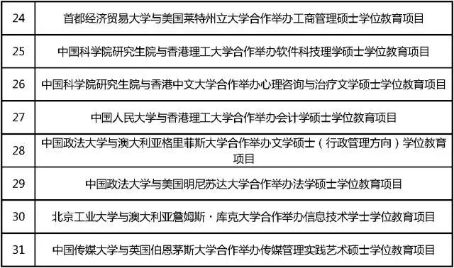 中外合作办学项目终止办学名单