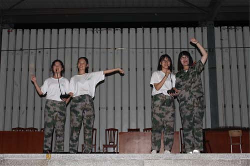 8月17日晚,军训生活即将告一段落,同学们利用自己的休息时间抓紧排练,最终给所有的教官和老师们献上了一场文艺盛宴。晚会最终取得圆满成功,也令所有的同学印象深刻,难忘终生。