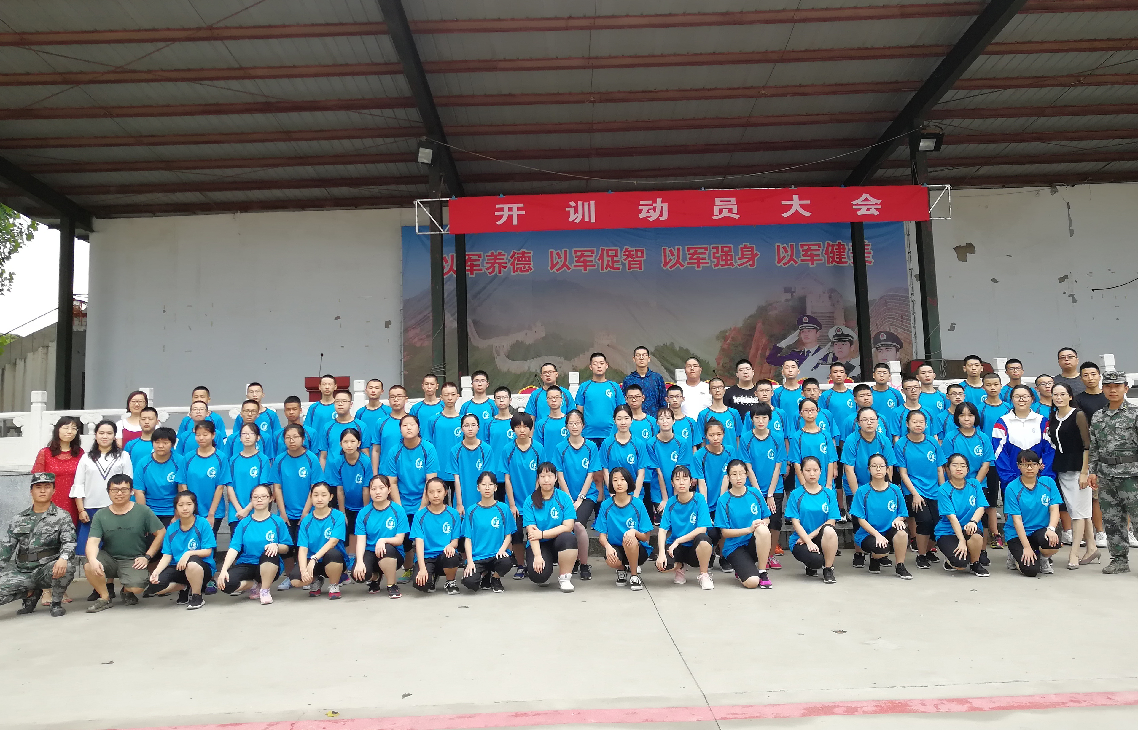 简单安顿之后,一场简单而不失隆重的军训开营仪式在基地有序召开。军训基地许主任、首师大附属云岗中学德育副校长张冬梅、校团委书记石磊、学生发展中心杨流、高一年级主任李妍出席开营仪式,全体高一新生、各班班主任、校医及教官共同参加此活动。仪式在庄严的国歌声中展开,同学们高唱国歌,笔直的身影、严肃的面庞中透露出磨练自己、提升素养的强烈渴望。