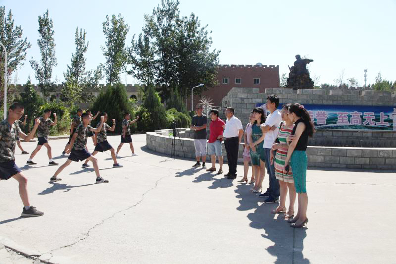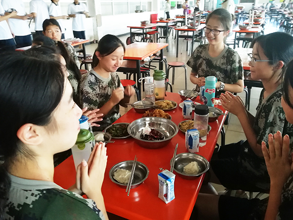 在年级主任李妍老师带领下,大家首先走进训练场了解同学们训练情况。炎炎烈日下,高一新生们正在教官的指挥下练习军体拳,他们整齐划一的动作、严肃认真的表情、颇有气势的吼声展现出学子们积极求学,保家卫国的赤子之情。领导们频频点头表示赞许,他们还细心询问同学们就餐、就寝情况,叮嘱负责老师要时刻关注学生的身体情况变化,发现有身体不适的学生要及时处理,确保同学们训练安全。