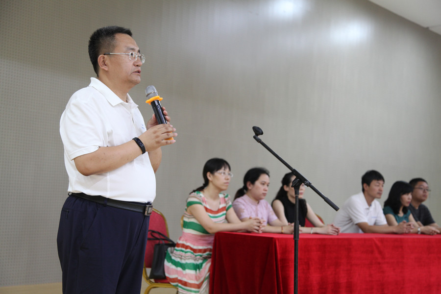 随后在军训基地礼堂,举行了一场简单而温馨的见面会,会议由学生发展中心杨流老师主持。同学们昂首挺胸,齐呼校训,齐唱校歌,饱满的精神面貌得到了领导老师们的赞赏。张进兵校长在讲话中充分肯定了同学们不怕苦、不怕累,坚持不懈的精神,并希望同学们把这种精神发扬到以后的学习生活中去,真正做到心中有志、心中有责、心中有爱,努力成为“乐学·和美”可持续发展的中学生。