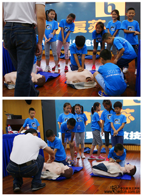 专业教师向数十名学员详细介绍急救知识与技能,并现场教授“心肺复苏”这一重要知识点,孩子们认真学习,亲自实践,从失误中习得教训,从练习中得到宝贵的人生经验。