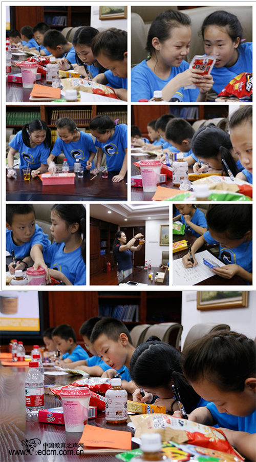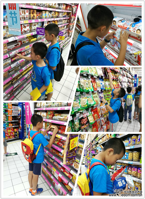 下午,老师带着小学员们深入超市,搜集食品包装袋上“配料”一项中关于“添加剂”的说明与列表。孩子们穿梭于货架间,尽可能多地记录自己需要的资料。