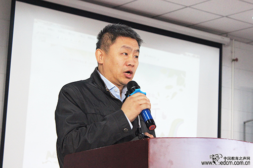 朝阳区第二实验小学校长郝朝阳致辞。他表示,在学校多彩、多元、多快乐的英语课堂建设中,赵红枫老师逐渐形成了独特的教学特点和风格——词汇教学游戏化、绘画教学情景化、阅读教学兴趣化、绘本教学戏剧化,郝校长称其为“四个现代化”。同时,郝校长强调,如今的学校在办学时关系比数据更重要,教师数据和教学数据促进学校发展,但师与生、教与学、家与校的关系也需要妥善处理,赵红枫老师用爱和快乐处理好这些关系,值得每一位老师学习。他以“已是深秋,满眼红枫,多彩绚烂,走在其间,爱与快乐同行”结束了致辞。