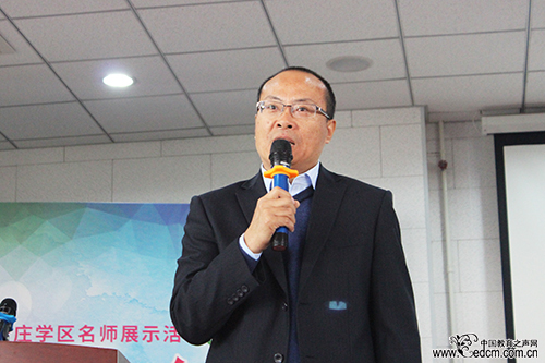 管庄学区理事长付晓洁致辞。他介绍了管庄学区名师展示系列活动,并与在座的教师们分享了他曾经学习英语的经历。他指出,高中英语新课标标准是“两德两品”,即语言能力、学习能力、文化品德、思维品德,这就要求教师需从小学阶段重视培养孩子的核心素养,为孩子打好基础。