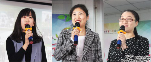 团队交流环节由朝阳区第二实验小学副校长李娜担任主持,她介绍,学校现有英语教师57名,赵红枫老师是团队中不可或缺的引路人。对此,团队中的青年教师纷纷上台发言,表达了对赵红枫老师的欣赏与感谢。“赵老师是我的前辈,见证了我一路的成长,让我在短短的四年时间里,成为一名优秀的青年教师。”“我眼中的赵老师是经验丰富、善于研究的老师,即使再忙,她也调整时间,参加培训和学习,回到学校后,她会把收获与理念分享给团队,让大家共同进步。”“赵老师总是快乐地投入到工作中,她的魅力感染着我们,我们非常感谢她!”
