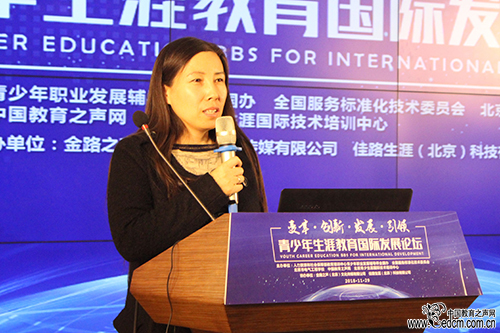 青少年职业发展辅导师全国办主任、金路之声(北京)文化传媒有限公司董事长徐建娟发言