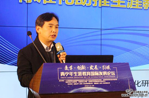 北京第二外国语学院科研处处长郑承军教授分享了他对《中国小初高生涯教育的多元化视角与创新思维》这一课题的感悟。他表示,生涯教育使学生能够自主选择、自行发展、自我管理与激励,从被动的成长变为主动的成长,从而认识自我、学会思考,规划人生、学会选择,完善自己。随着学生的成长,他的生涯规划也不会一成不变,这是一个动态的过程,是青少年断地发现自己不断选择不断地适应的过程,要在生活中学习,在学习中生活。