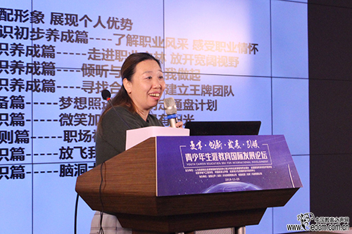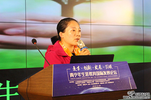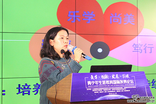 北京市电气工程学校教师任爽英老师做《在专业课教学过程中生涯教育的渗透》案例分享。在实际教学中,要让学生对所学内容感兴趣,知道努力的方向,才能取得更好的课堂效果。她以组培技术工人招聘为例,将工作职责及工作内容详细讲给学生,让他们有切身体会和发自内心的感受。