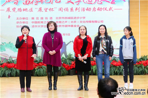西城区展览路街道工委书记魏建明在致辞中指出,展览路街道致力于营造校内校外齐读书、好读书、读好书的浓厚书香氛围,使社区、学校、家庭三位一体共同营造好的阅读环境,让广大青少年儿童在广博的知识中快乐成长。