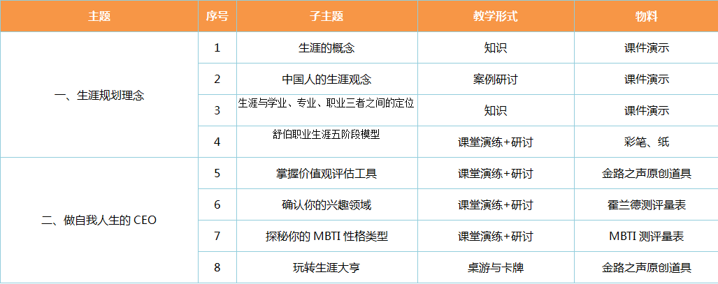 1:我校几位学员进行培训后,能够利用自己的学科优势和特长,结合所学习的内容,为学生进行一定程度的生涯规划指导,尤其是有的老师能够把生涯规划指导用于班级的管理中,取得了很好的效果。 ——首都师范大学附属云岗中学吕慧老师