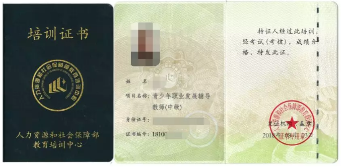 青少年职业发展辅导教师高级证书