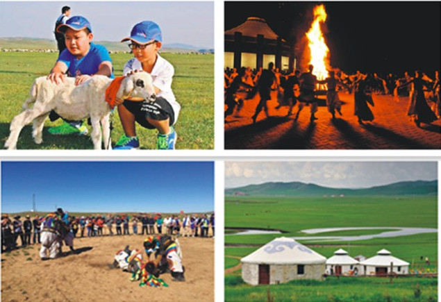 草原印象 上午:呼和浩特早乘空调旅游车前往【希拉穆仁草原】,跨越阴山山脉之大青山,途径北魏重镇武川。 到达后接受蒙古族迎宾礼仪:敬献下马酒,草原自由活动。午餐含蒙古风味手把肉。下午观看赛马、蒙古式摔跤表演;晚餐席间敬献两米四花尊贵哈达,奉上醇香奶酒,游客可纵情娱乐。 【牧场活动】、穿蒙古包拍照、品草原下午茶、搭建蒙古包、参加拔河比赛、还可沿河边捕捞小鱼、感受梦一样的草原。 【蒙古包DIY】由牧民讲解蒙古构造,认识蒙古包的基本材料:哈那(即蒙古包支架)、套脑(即天窗),学生合作,亲手搭建草原上移动的别墅,叹服蒙古人的智慧; 下午: 【蒙娃当家】分工合作,采用新鲜牛奶及草原地下无污染矿泉水,慢火熬制出香味扑鼻的老额吉奶茶,并与团友一起分享; 【萌娃向前冲】参加拔河比赛,由牧民大叔为获胜者颁奖,在比赛中学习合作的精神,培养学生的集体荣誉感(获胜者有奖品奖励哦) 【洋羊得意】与草原上的可爱山羊零距离亲密接触,喂养小羊,一起合影拍照,留下美好回忆 【王者归来】射箭是每一个蒙古族男儿必会的技能,学习射箭,感受蒙古勇士征战沙场、征服亚欧大陆的豪迈,。晚参加篝火晚会,与蒙古族牧民载歌载舞,其乐融融。 晚上:[篝火晚会]、【写作】:用思维表达所看所想,写下心灵篇章。 含早中晚餐 入住草原观景蒙古包