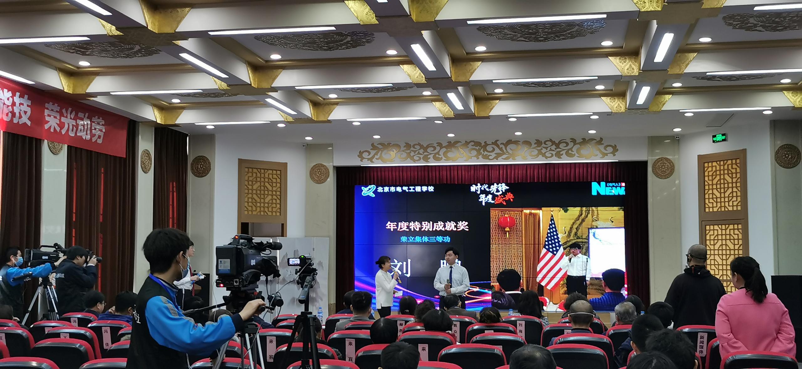 北京电气工程学校校长崇静在专题报告中指出,学校的建设发展,始终紧紧围绕立德树人根本任务,坚持党对意识形态工作的领导权,坚持营造风清气正的网络空间,坚持讲好中国故事、传播好电气声音。电气人通讯社以提升学生人文素养为特色,成为学校一块重要的思想政治教育阵地,培养“听党话、跟党走”信念坚定,立场鲜明的“电气人”。