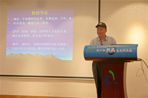 秦璞教授在启动仪式现场进行了《艺术审美与成长》艺术分享,他特别指出,对艺术文化素质的培养就是对人的素质的培养,不论是美术、书法、还是唱歌跳舞,实质上就是是培养孩子们的素质教育和美育,是对孩子自身的根本提升。文明对孩子的教育不是说教,而是让从孩子的内心去萌发兴趣和理想,并慢慢培育。所以作为家长和老师,我们都不可急于求成,揠苗助长,要尊重孩子的健康成长规律,注重在孩子成长过程中进行“以美化人、以美育人、发现美、创造美“的引领,去发现并肯定孩子在每一个阶段的进步而不是一味追求结果,去构建孩子健全人格。