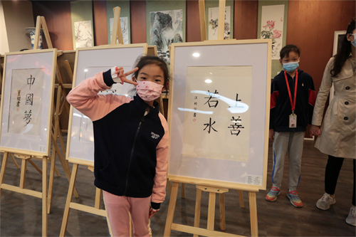 一幅幅透露着孩子们天马行空的精彩作品,吸引了很多前来参展的家长和孩子们驻足观赏,《上善若水 》、《竹外孤村独见梅》、《井冈山》、《中国梦》等等生动的画作让家长和孩子们都沉浸在小画家们眼中的祖国之美。